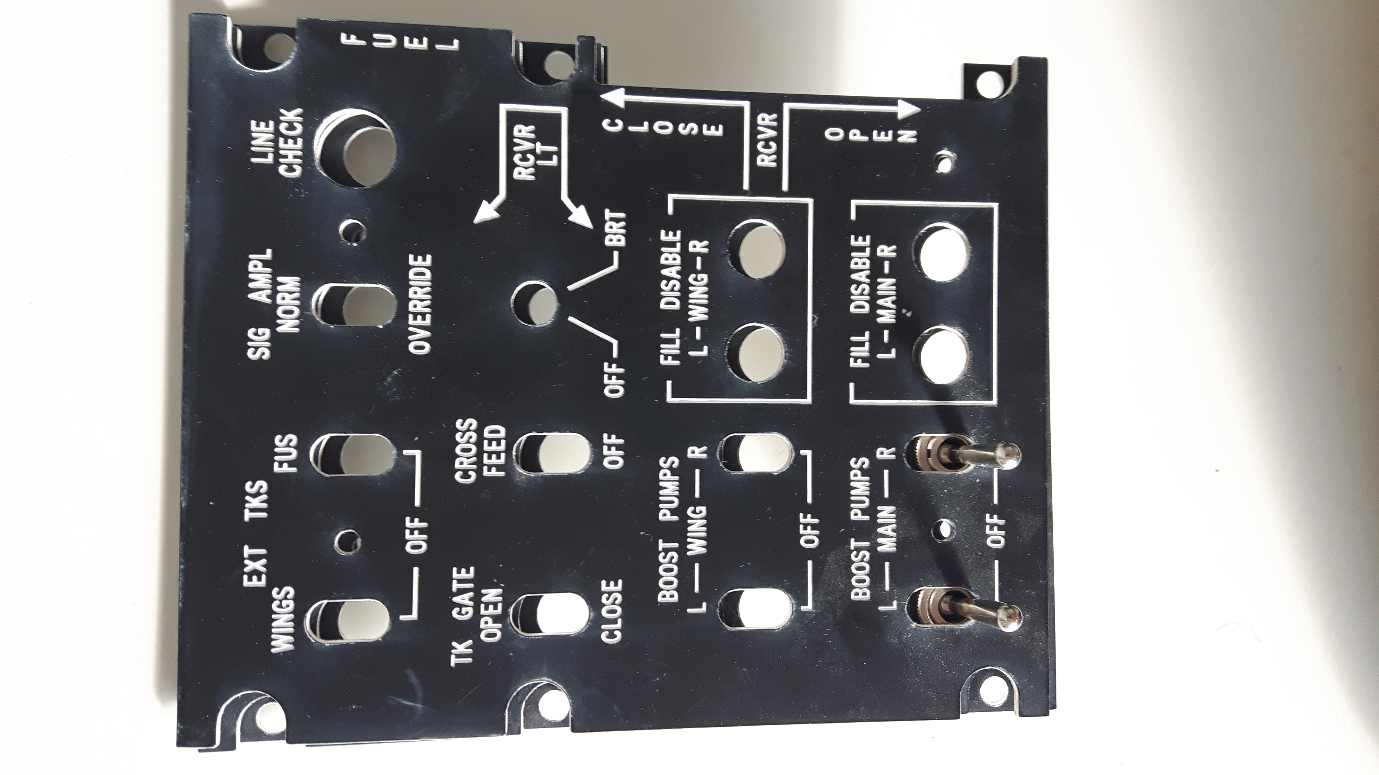Das Panel ist aus Leimholz und CNC gefräßt. Zusätzlich dazu habe ich auch noch ein Fuel Control Panel.