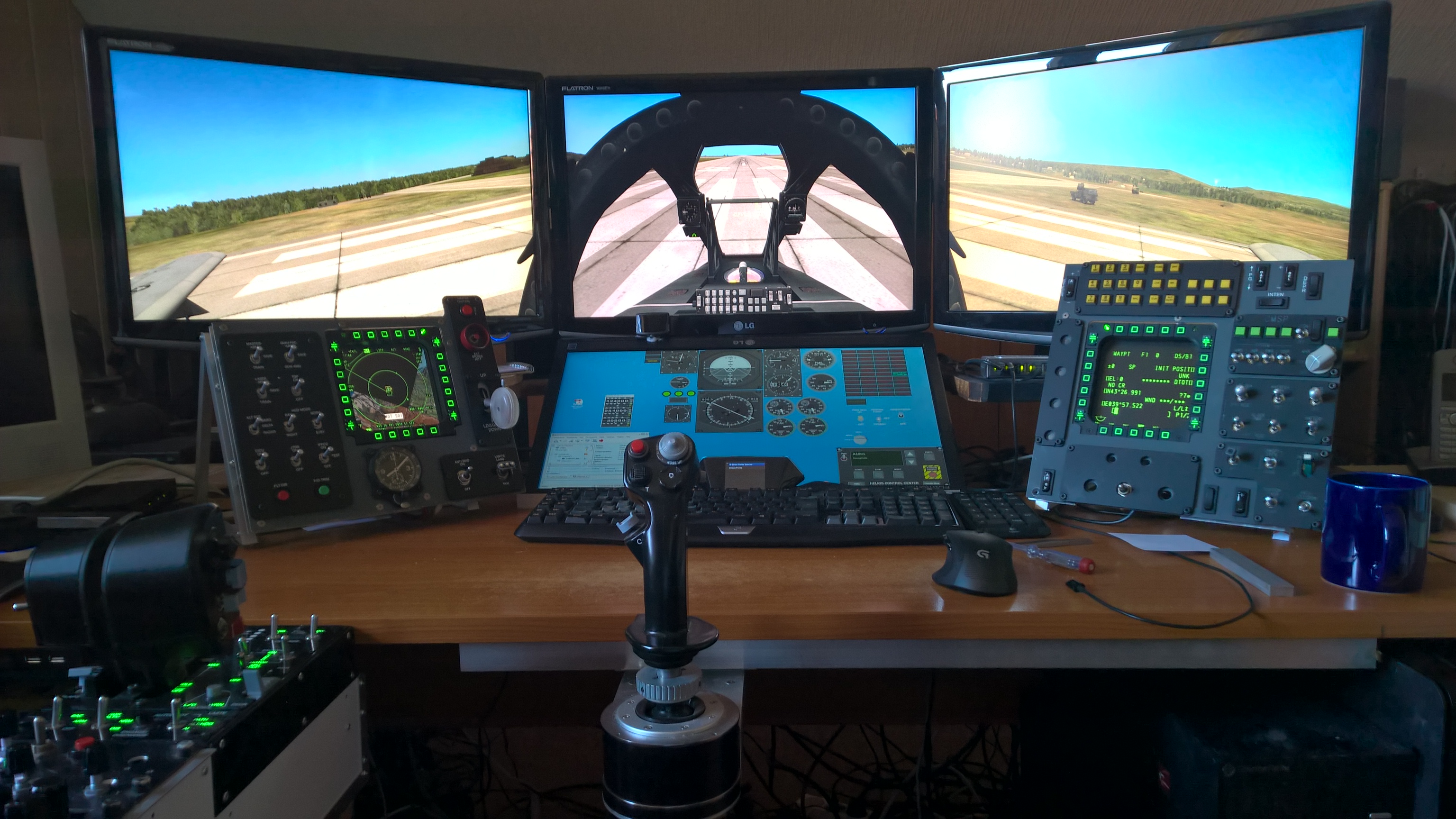 Die von Dir beschriebene Lösung ist die scheinbar logische. Ich möchte aber gern die "Grundposition" verändern (F12 mit TrackIR). Das heißt: Grundlinie unterhalb der MFCDs, HUD vollständig abgebildet, und in Richtung rechts, links und oben ein erweitertes Sichtfeld. Bei einen 3 Schirm Setting geht ja auch nicht das Kockpit über alle 3 Bildschirme, sondern beschränkt sich auf den Mittleren. (Das ist die Lösung von der ich jetzt ein wenig träume