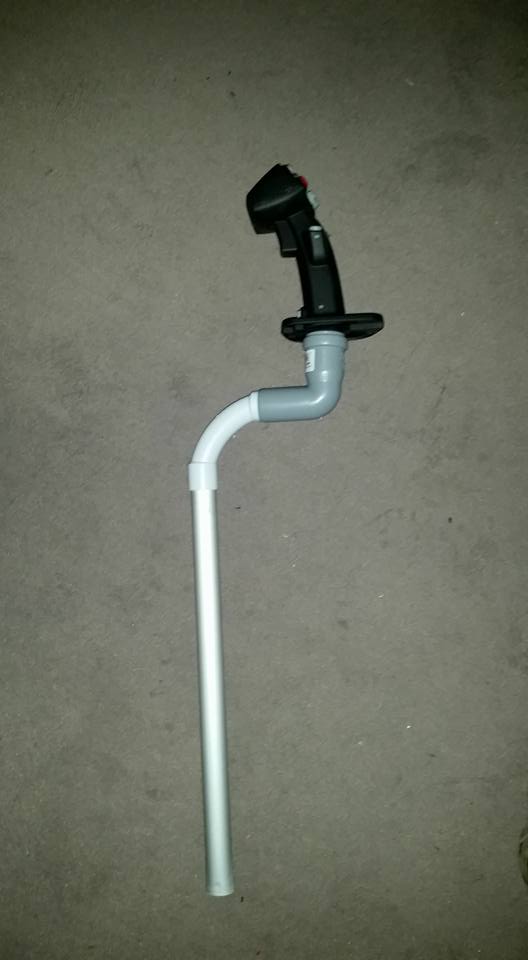 Ich habe mit diversen Setups gespielt, und hab mich nun auf eine Hebellänge und Versatz des Sticks zum Drehpunkt festgelegt. Als Anhaltspunkt hab ich das Stickdesign aus der Huey übernehmen, da dieses einfacher umzusetzen war, als diverse Eurocopter-Modelle mit den extrem gebogenen Rohren. Ich habe einige Tage herumexperimentiert und finde ich hab den für mich besten KOmpromiss zwischen Beinfreiheit und Hebelweg gefunden mit 310mm Rohrlänge. Durch den Hebelweg kommt man schnell an die Grenzen indem man mit den Beinen im weg ist oder die Reichweite der Arme einfach nicht ausreicht.