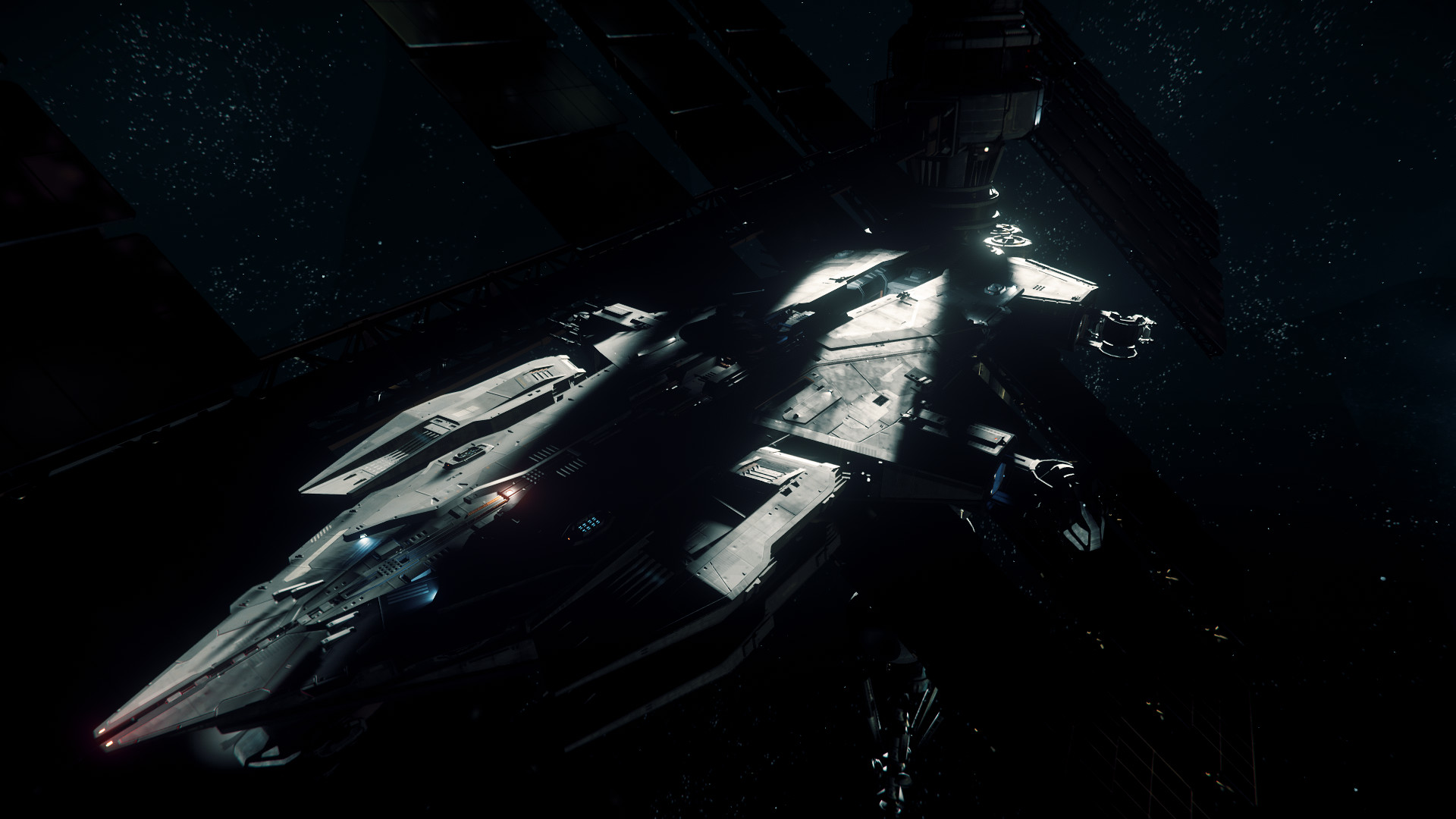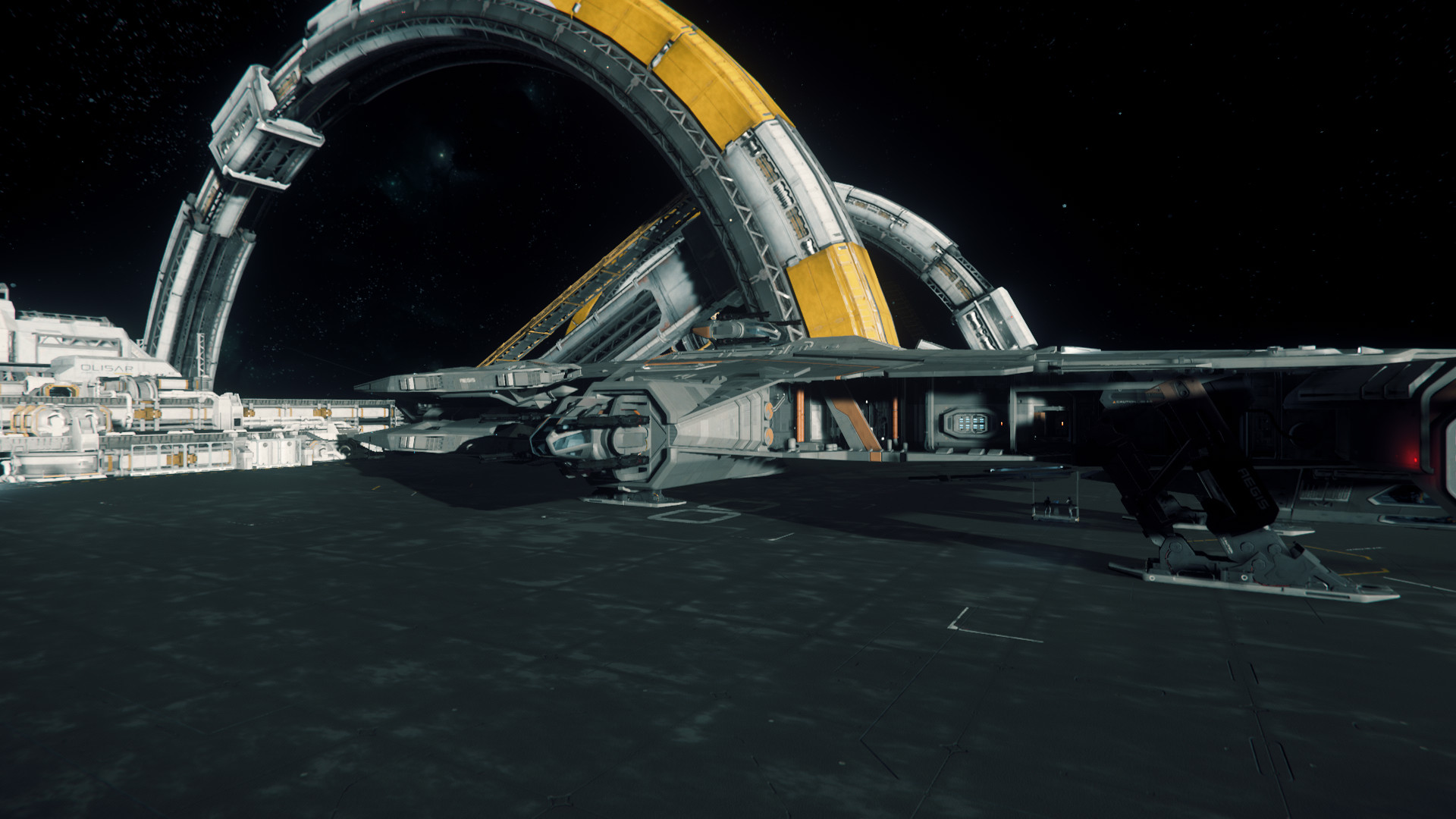 Hier stehen wir noch Port Olisar, und begeben uns zum Schiff.
