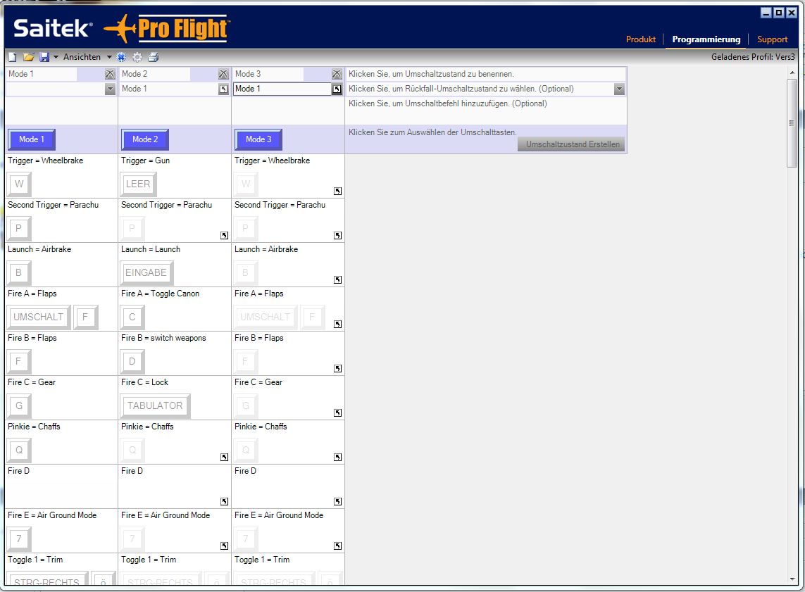 Anschließend kannst du mit der Programmierung beginnen. Der Punkt ist, du musst für jeden Button des Joysticks eine Taste oder Tastenkombination hinterlegen. Hier ein Screenshot, wie das in einem meiner Profile funktioniert: