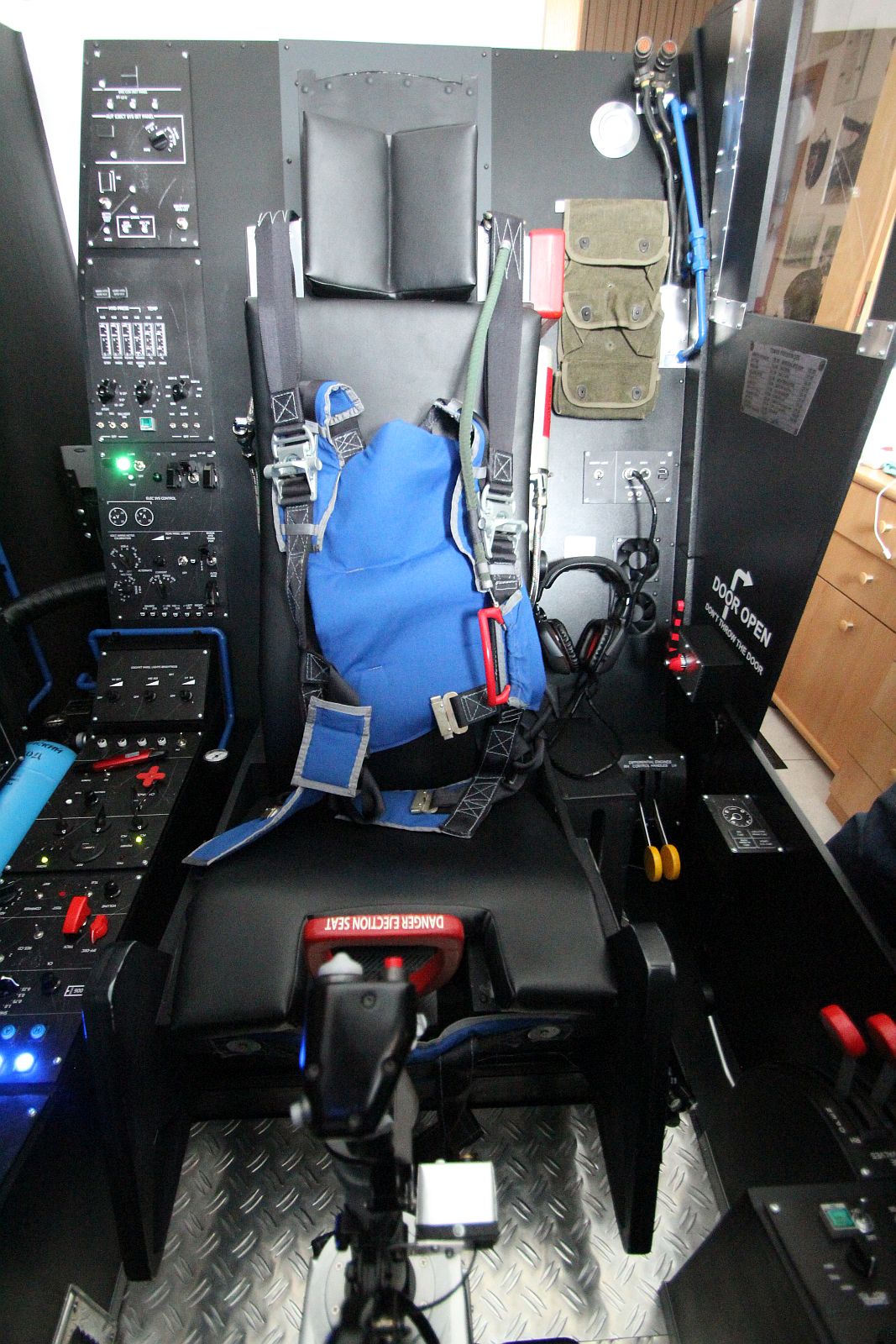 3. Tür inklusive Griff - der in der Simulation natürlich die "AUF" und "ZU" Funktion der Cockpittür steuert - gebaut, Fenster und Türverkleidung gebastelt.