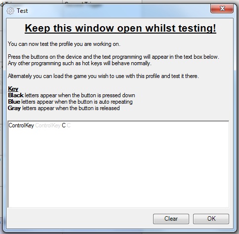 Also wenn ich mir das so ansehen dann lässt dein Joystick die Strg-Taste bereits los bevor er die C-Taste drückt.