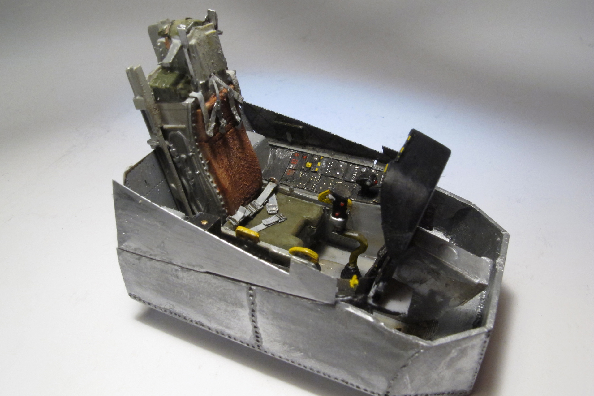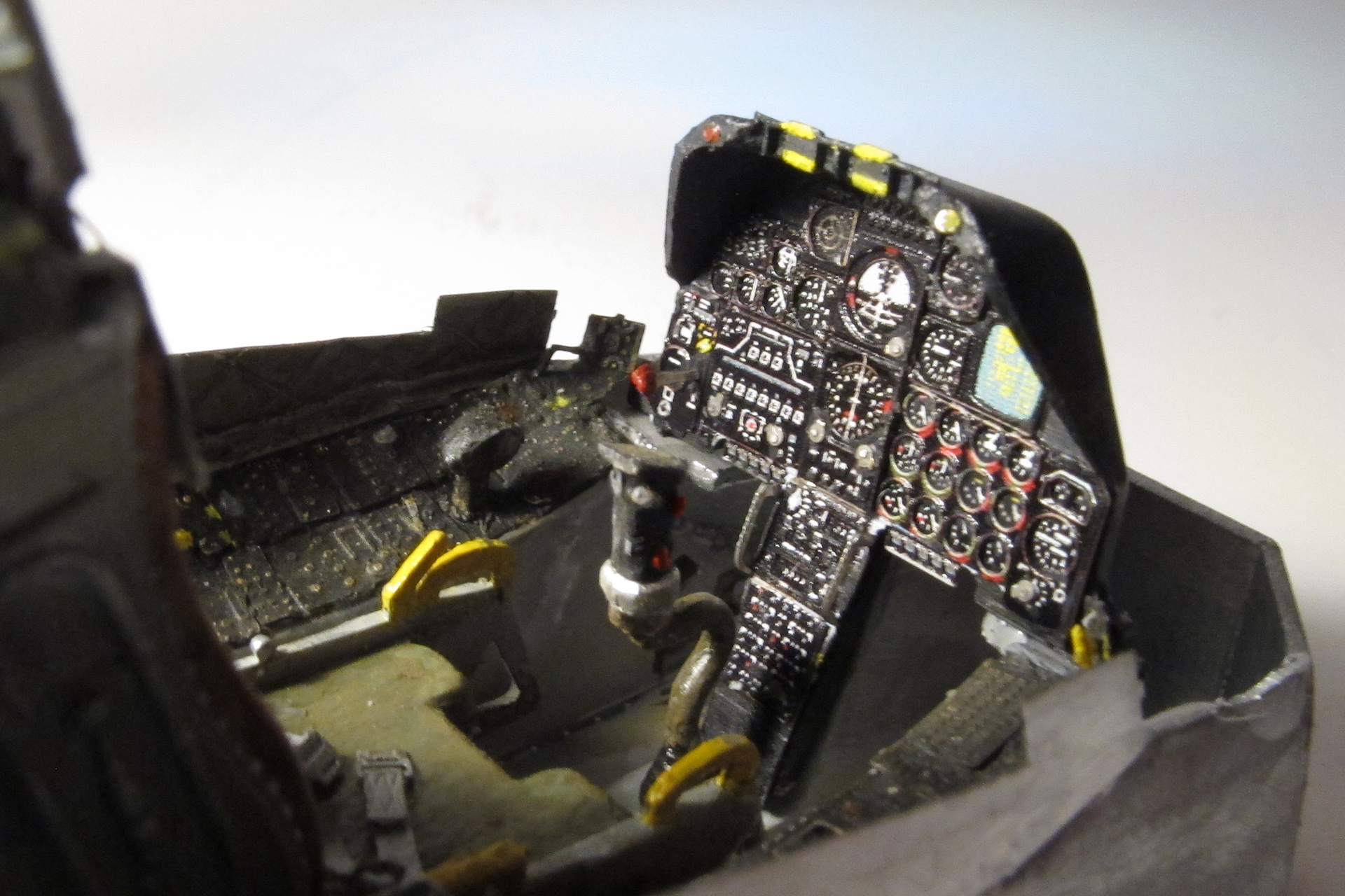 Original zu echten Aufnahmen eines A10-A Cockpits habe ich alles in US Aircraft Gray lackiert und alles einen starken abgenutzen Look verpasst.
