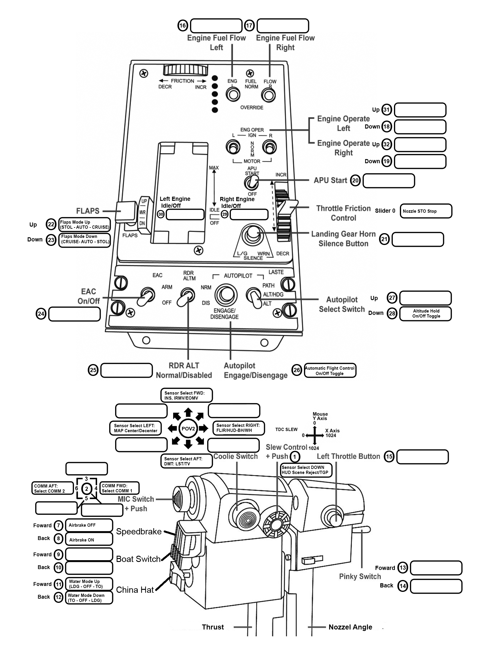 Ich pers. schalte gerne die Modis AG, NAV und STOL mit dem 3-Wege Schalter (Boatswitch) am Schubhebel um und da keine Standardvariante im Spiel vorhanden ist und TARGET zwar nett ist aber so seine Tücken hat habe ich mal was selbst gebastelt was auch ohne TARGET funktioniert. Das hier funktioniert mit jedem 3 Wege Schalter am Warthog und sicherlich auch an anderen Joysticks mit 3-Wege Schalter.