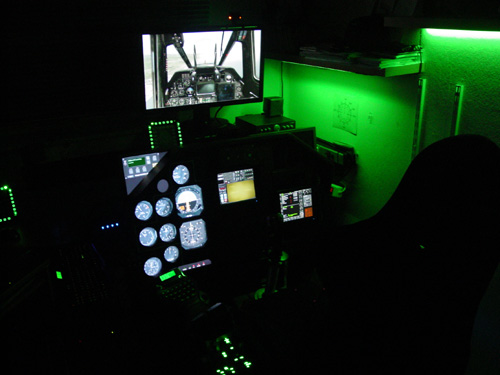 wie Du siehst konnte ich deinem Link folgen. Das Cockpit siht schon cool aus... es macht auch ein wenig neidisch. Allerdings wage ich mir den Gesichtsausdruck meiner Frau nicht auszumalen wenn ich auch soetwas bauen wollen würde. Ganz abgesehen von meiner völligen Ahnungslosigkeit wie soetwas in die Simulation einzubinden ist.