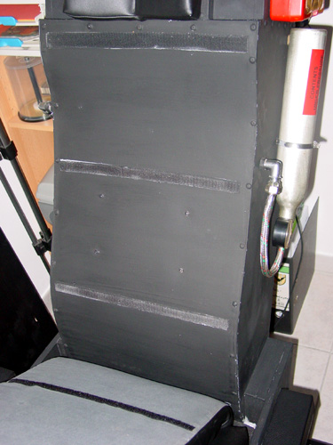 Der Bezug ist aus Leder mit Schaumstofffüllung. Der wird dann mittels Klettverschluss an dem Blech befestigt, siehe Foto.