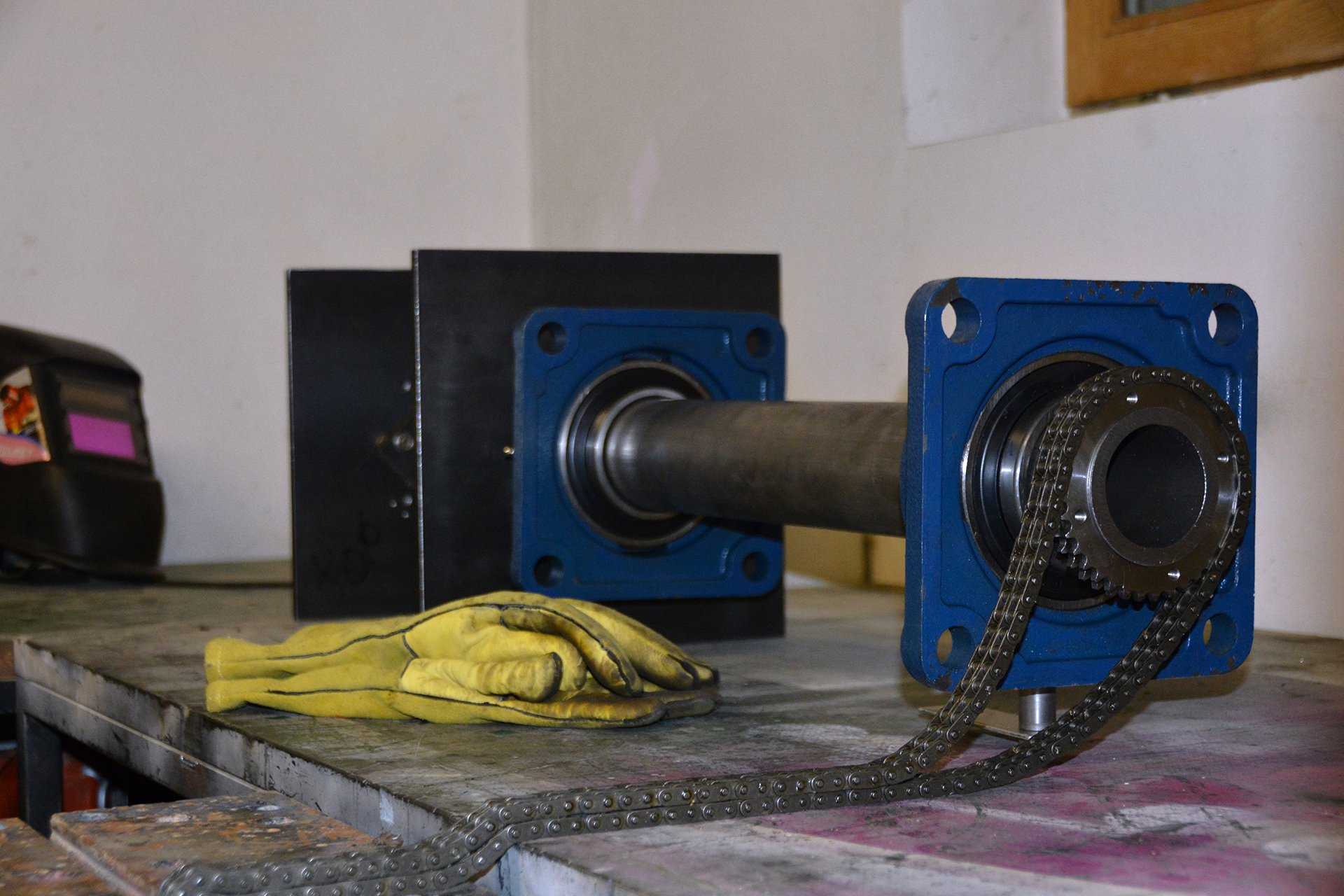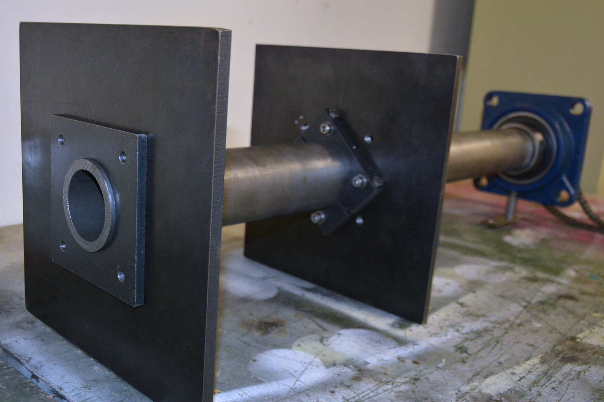 Die Antriebsachse mit D=80mm kommt auf stolze 80kg.