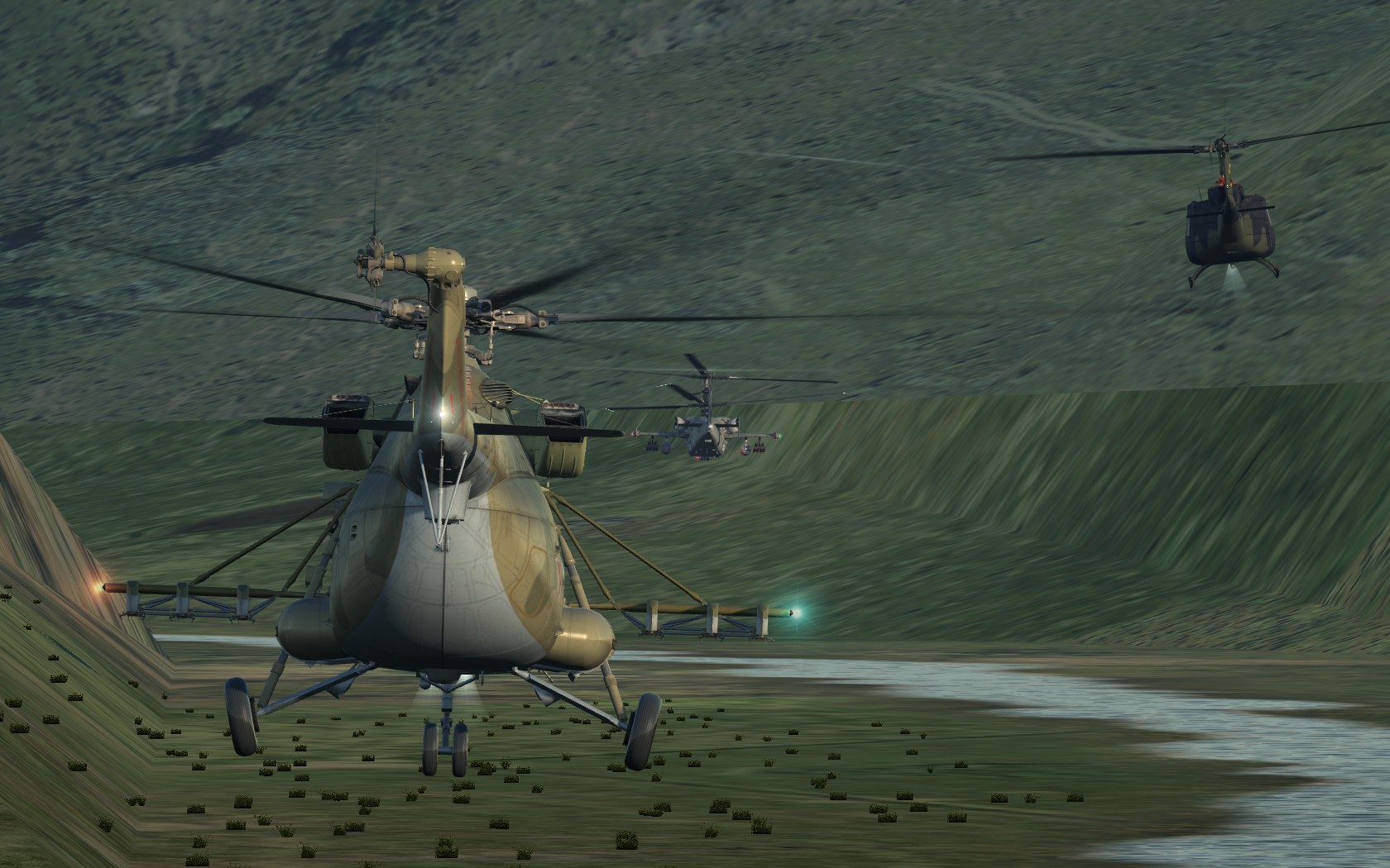 und zum Schluss noch ein kleines Rennen (3 x Mi-8, 1 x Ka50, 1 x Mirage 2000) nach Hause...