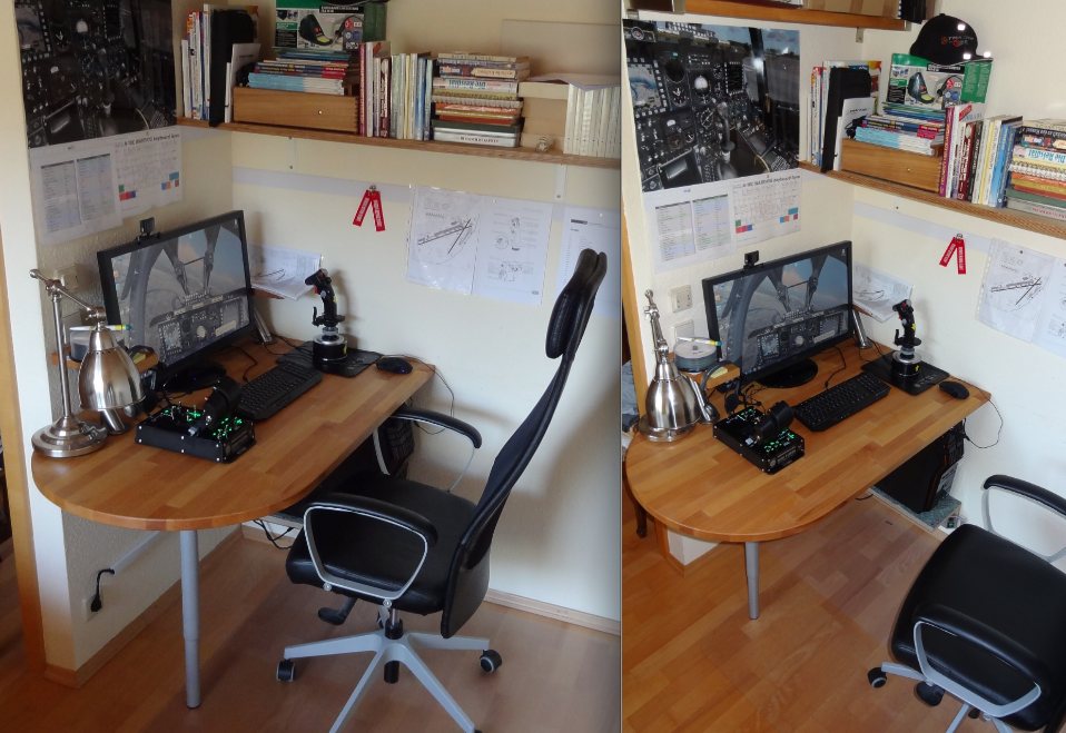 So, nach den (Schulter)Problemen, die ich in der vergangenen Zeit hatte, habe ich versucht, die HOTAS etwas ergonomischer anzuordnen.