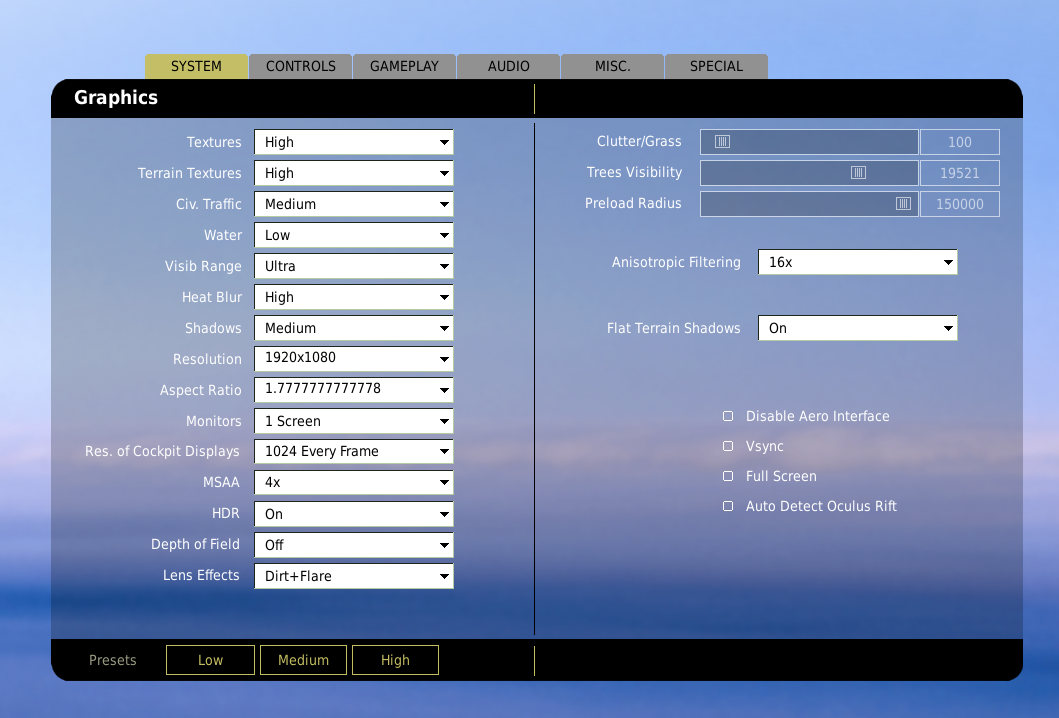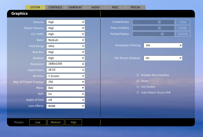 Hiermit erreiche ich im Standardtemplate auf dem Dedi Server 70 Frames, wenn ich in der A-10C (Edelweiss 1) sitze mit Blick stur nach vorn aus dem Cockpit und nachdem das Initialscript durchgelaufen ist. (War allerdings alleine auf dem Server).